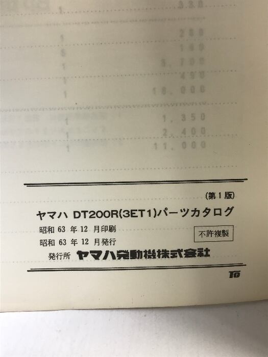 タイトル:(7)YAMAHA パーツカタログ DT200R(3ET1) (3ET-000101~)1988.12 593ET-010J1