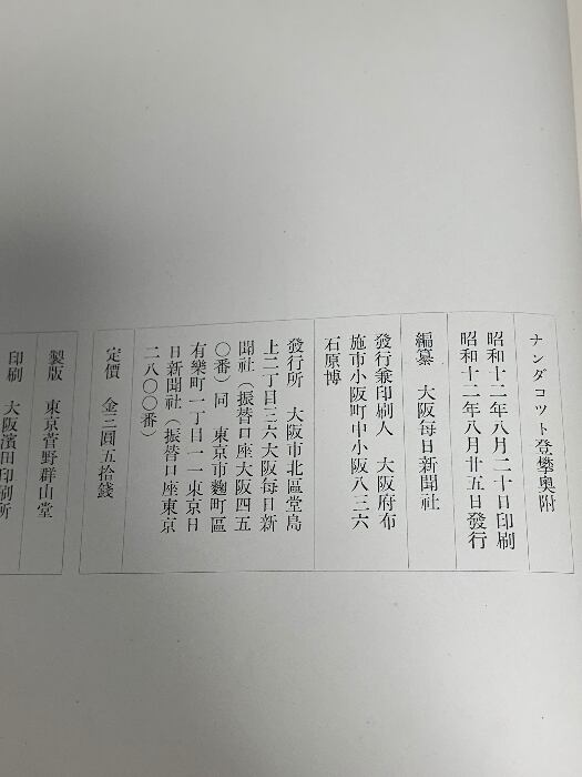 ナンダ・コット登攀 竹節 作太 毎日新聞社 1937