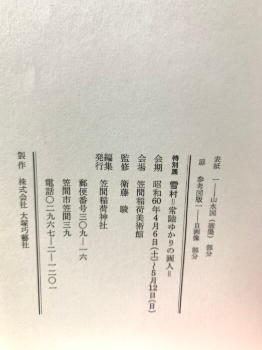 図録 特別展 雪村 せっそん 常陸ゆかりの画人 笠間稲荷美術館 1985