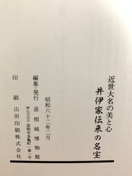 タイトル:井伊家伝来の名宝 近世大名の美と心 彦根城博物館 1987