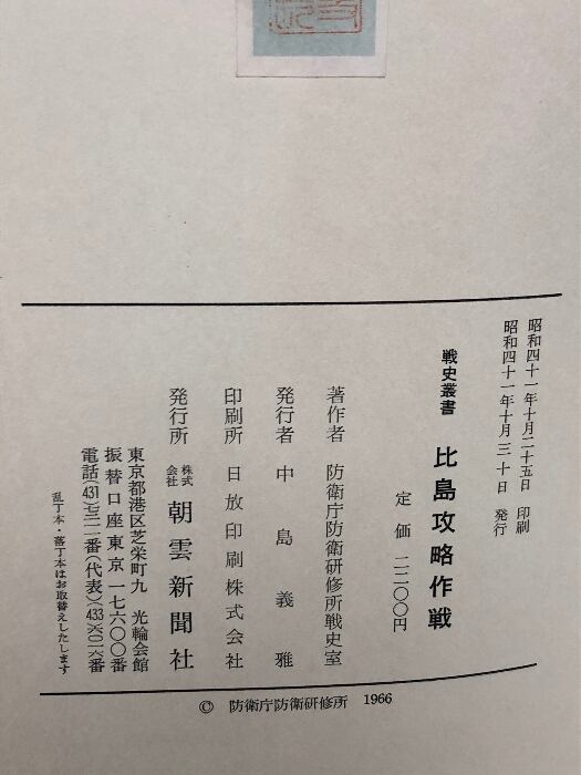 タイトル:戦史叢書 比島政略戦争 防衛庁防衛研究所戦史室 付録付き。付図付き。 朝雲新聞社