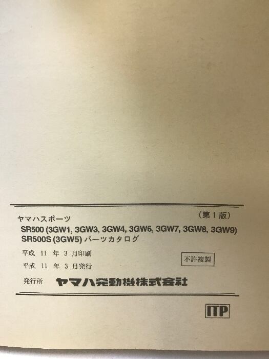 タイトル:(23)YAMAHA パーツカタログ SR500(3GW1.3.4.5.6.7.8.9)1999.3 1版 193GW-010J1