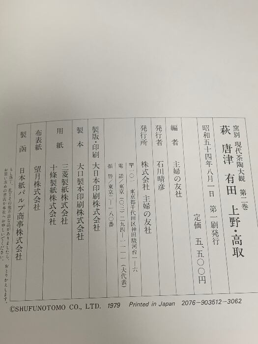図録 萩 唐津 有田 上野・高取 窯別 現代茶陶大観2 主婦の友社