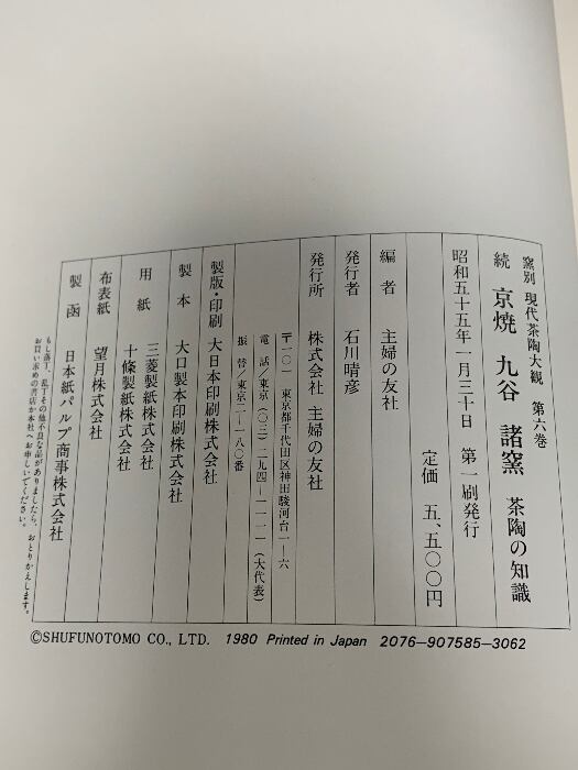 続・京焼 久谷 諸窯 茶陶の知識 窯別 現代茶陶大観6 主婦の友社