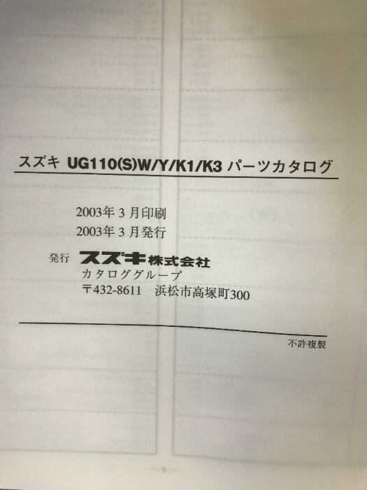 タイトル:(47)SUZUKI パーツカタログ UG110(CF11A)(S.W.Y.K1.K3)アドレス110 2003.3 5版
