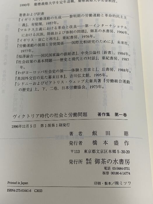 ヴィクトリア時代の社会と労働問題 飯田鼎著作集 第一巻 御茶の水書房