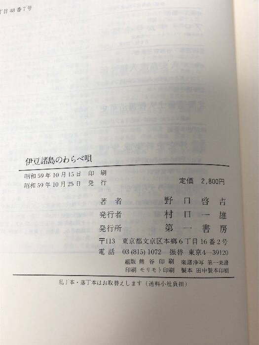 伊豆諸島のわらべ唄 野口啓吉 第一書房