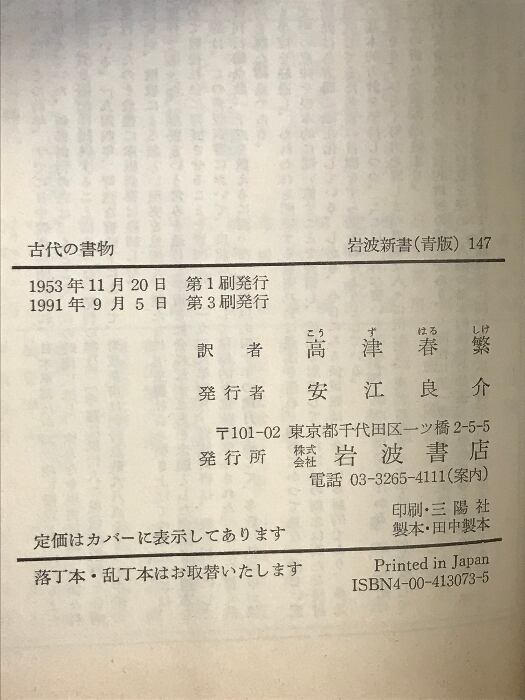 タイトル:古代の書物: ギリシア・ローマの書物と読者 (岩波新書 青版 147) 岩波書店 F.G.ケニオン