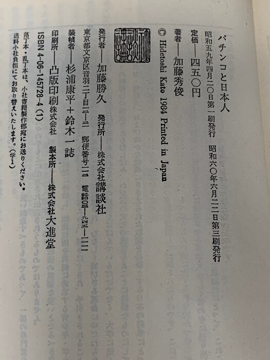 タイトル:パチンコと日本人 (講談社現代新書 728) 講談社 加藤 秀俊