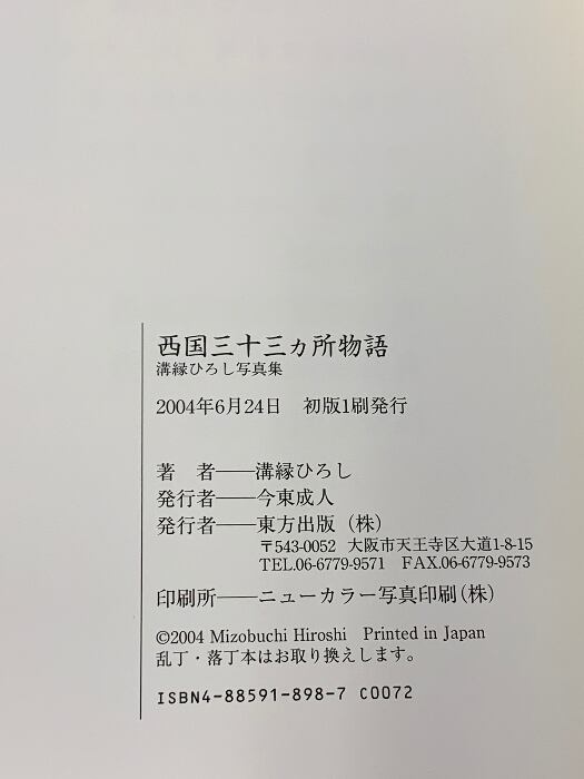 タイトル:サイン本 西国三十三ヵ所物語 溝縁ひろし写真集 東方出版