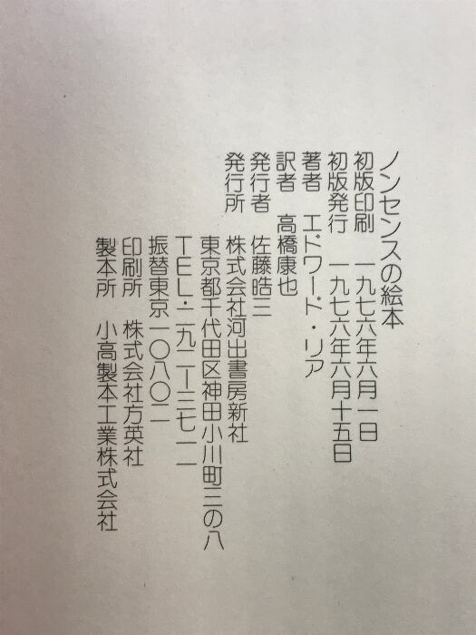 タイトル:ノンセンスの絵本〈1〉 河出書房新社 エドワード・リア 高橋康也:訳