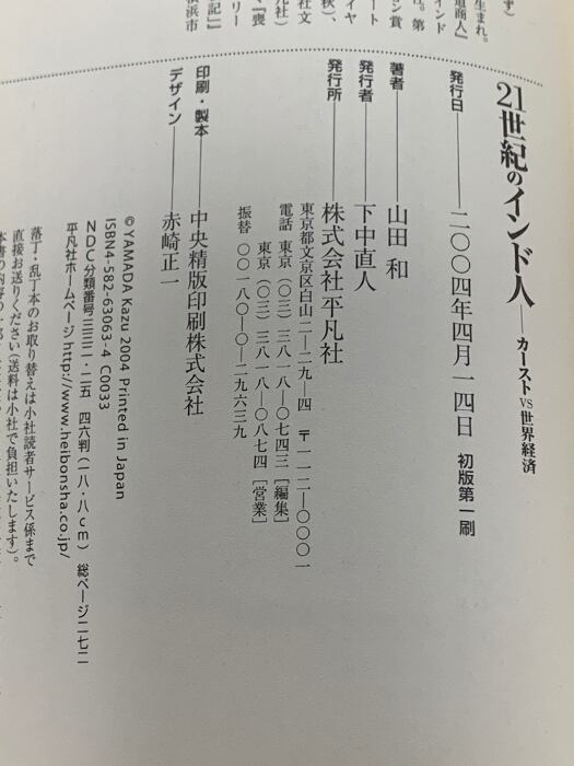 タイトル:21世紀のインド人 カーストvs世界経済 平凡社 山田 和