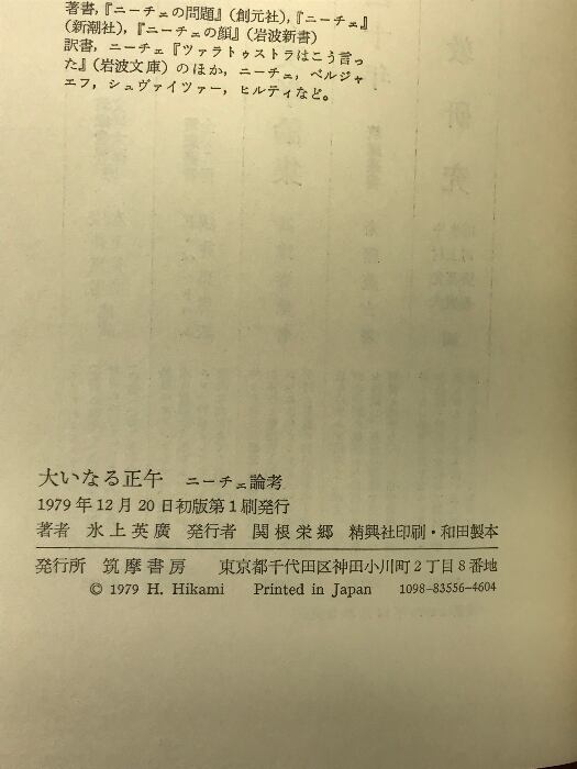 タイトル:大いなる正午―ニーチェ論考 筑摩書房 氷山英廣