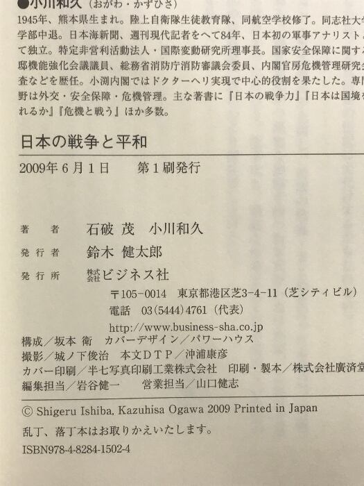 タイトル:日本の戦争と平和 ビジネス社 石破 茂