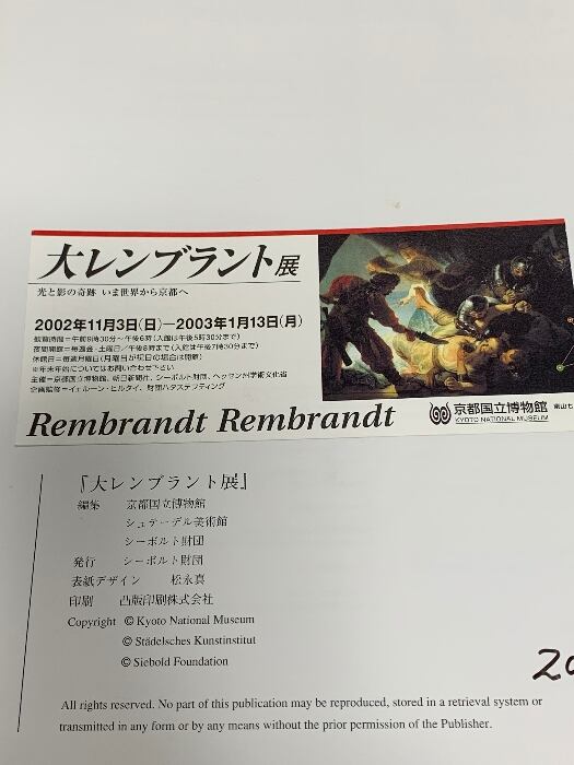 図録 大レンブラント展 Rembrandt Rembrandt 京都国立博物館