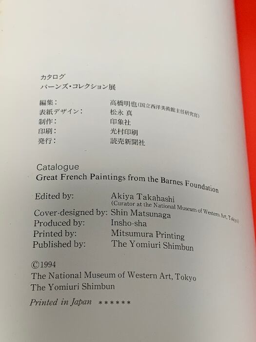 図録 バーンズ・コレクション展 読売新聞社 1994