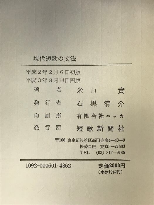 タイトル:現代短歌の文法 (短歌新聞社選書) 短歌新聞社 米口実