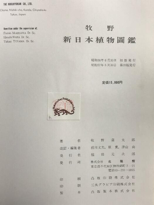 牧野新日本植物図鑑 北隆館 昭和57年 改訂・編集:前川文夫 原寛 津山尚