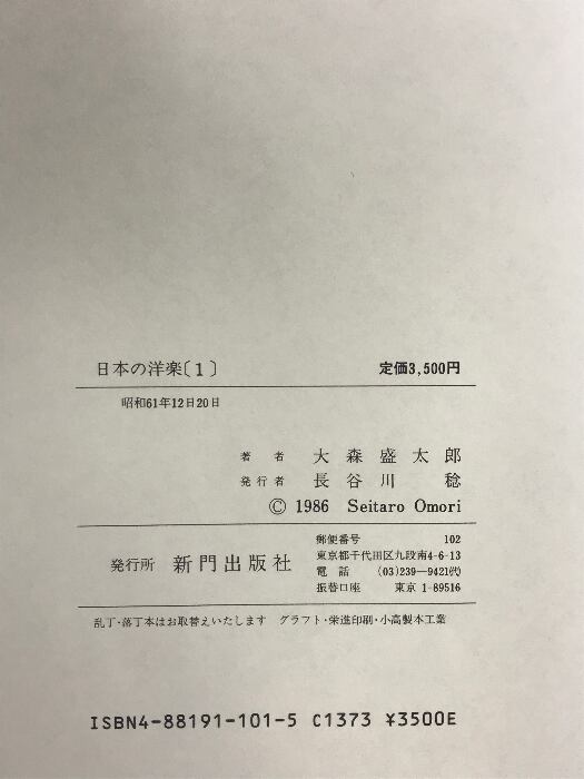 日本の洋楽1 ペリー来航から130年の歴史ドキュメント HISTORY OF MUSIC 新門出版社 大森盛太郎 昭和61年