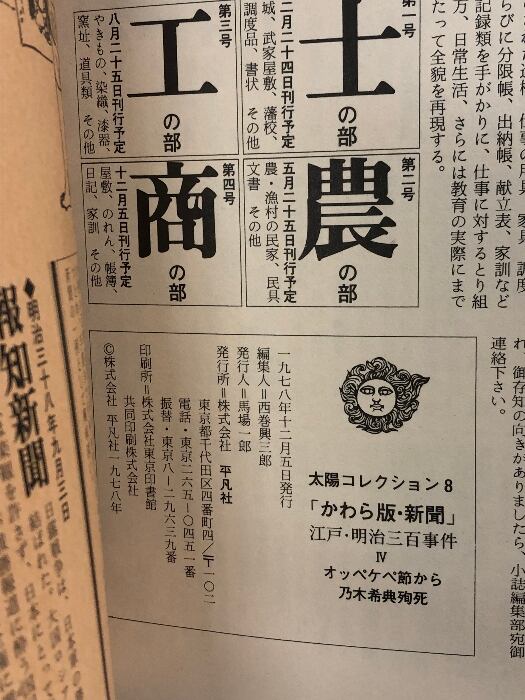 タイトル:太陽コレクション かわら版 新聞 江戸 明治 三百事件 4 オッペケペ節から 平凡社 特別付録完備