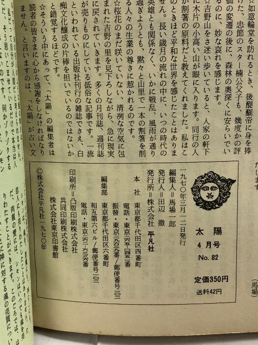 タイトル:太陽 ‘70 4 THE SUN no.82 特集 吉野と高野山 平凡社