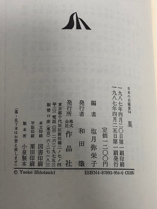日本の名随筆 (54) 菓 作品社 塩月 弥栄子