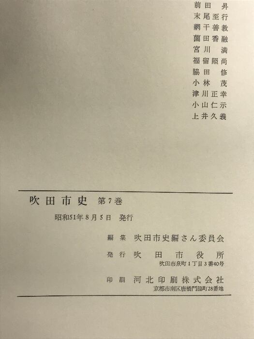 吹田市史(第7巻)(史料編4)(大阪府)昭和51年 発行:吹田市役所