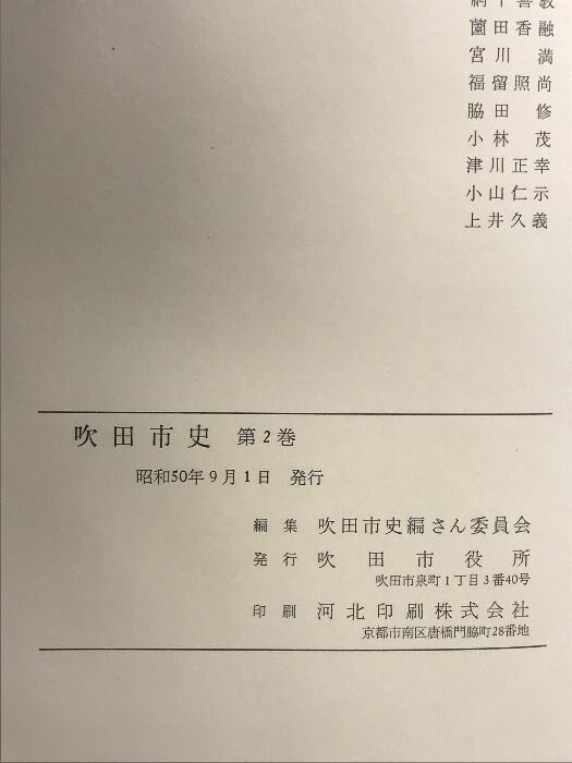 タイトル:吹田市史(第2巻)(大阪府)昭和50年 発行:吹田市役所
