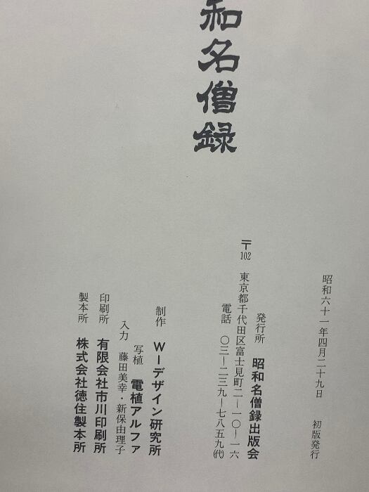 昭和名僧録 昭和六十一年 初版発行 昭和名僧録出版界