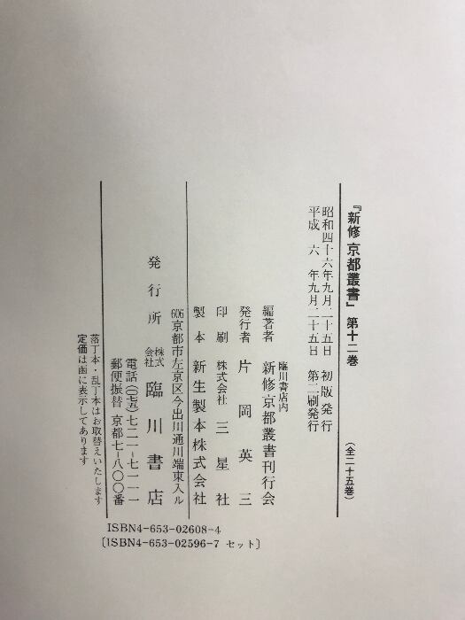 新修 京都叢書(第12巻)臨川書店刊 野間光辰編 平成6年