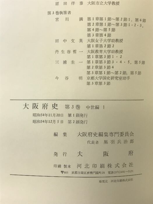 タイトル:大阪府史(第3巻)(中世編1)昭和54年 発行:大阪府