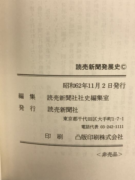 読売新聞発展史 昭和62年 発行:読売新聞社 (東京都千代田区)【非売品】