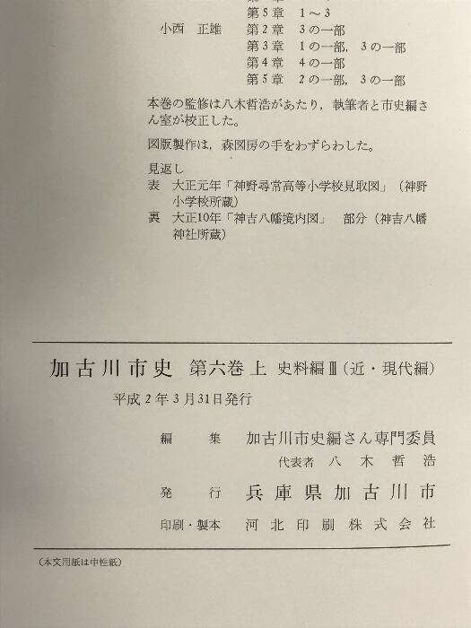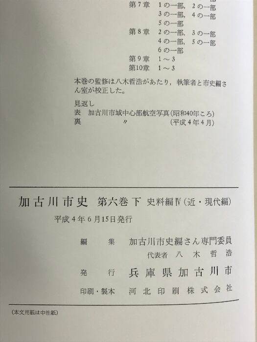 加古川市史 (兵庫県)(第6巻 上・下/全2冊セット)(史料編3 近・現代編)(史料編4近現代編)平成2年/平成4年 発行:加古川市