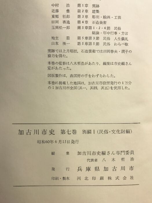加古川市史(兵庫県)(第7巻・別編1/民俗・文化財編)昭和60年 発行:加古川市