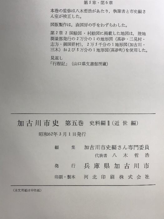 加古川市史(兵庫県)(第5巻・史料編2・近世編)昭和62年 発行:加古川市