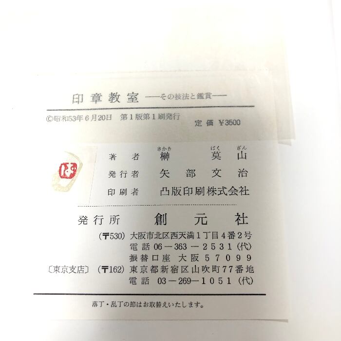 タイトル:印章教室―その技法と鑑賞(創元社クラフト・シリーズ) 榊 莫三 創元社
