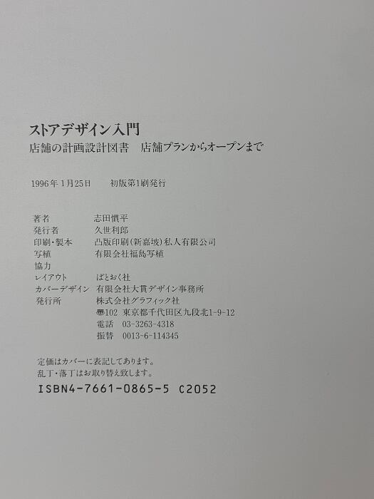 タイトル:ストアデザイン入門―店舗の計画設計図書 グラフィック社 志田慣平