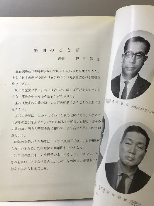 釜石製鉄所八十年史ー最近10年間の回顧と展望ー 昭和41年 発行:富士製鉄株式会社 釜石製鉄所 【非売品】