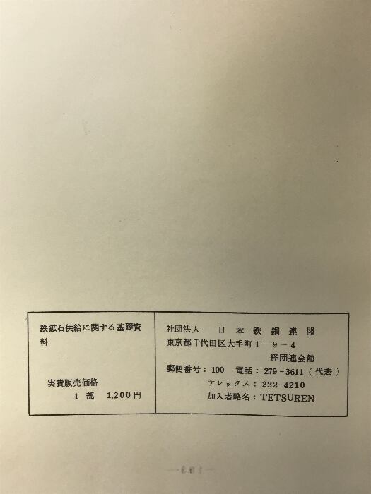 タイトル:鉄鉱石供給に関する基礎資料 昭和48年 科学技術庁資源調査所資料第22号 社団法人 日本鉄鋼連盟