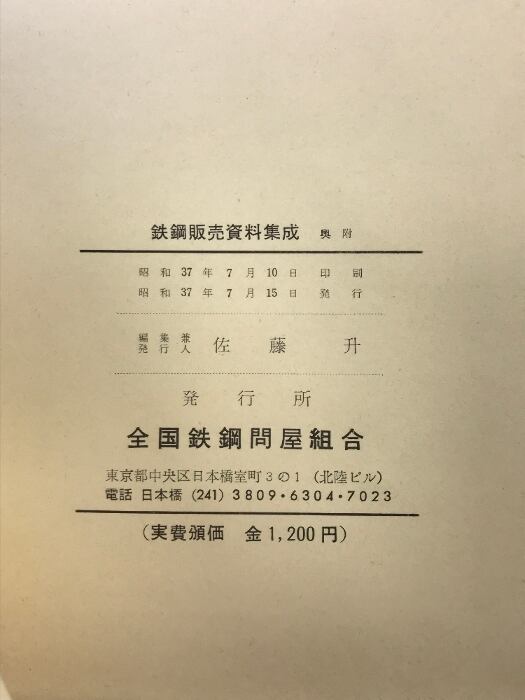 鉄鋼販売資料集成 発行:全国製鉄問屋組合編 昭和37年