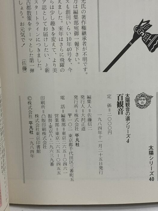 観音の道 4 百観音 太陽シリーズ 40 1984 平凡社