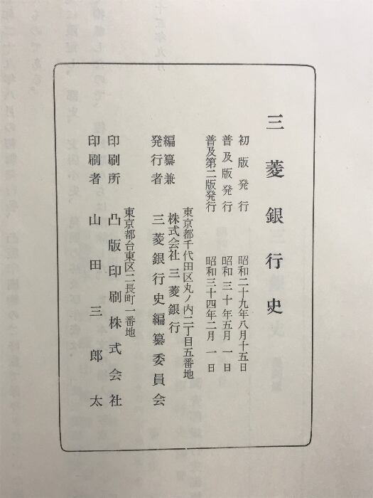 タイトル:三菱銀行史 昭和34年 発行:三菱銀行史編纂委員会