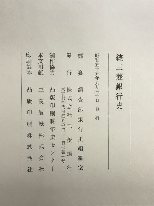 タイトル:続 三菱銀行史 昭和55年 発行:株式会社三菱銀行
