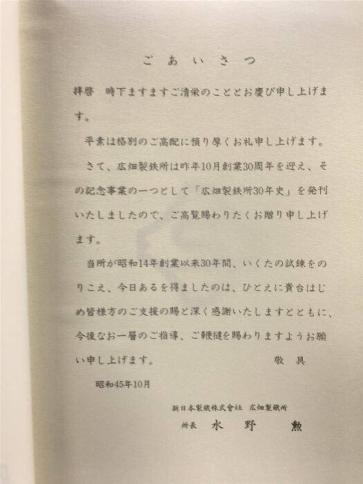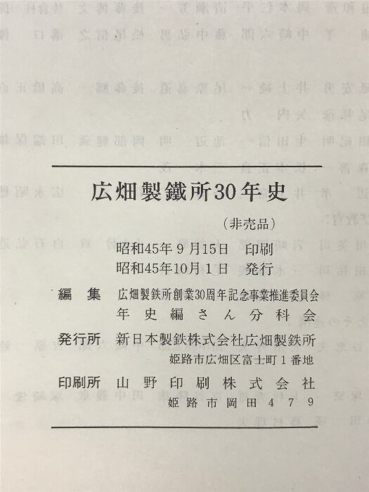 広畑製鉄所三十年史 昭和45年 発行:新日本製鉄株式会社広畑製鉄所 【非売品】