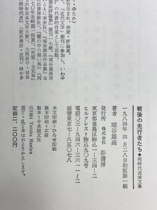 戦後の先行者たち: 同時代追悼文集 影書房 埴谷 雄高