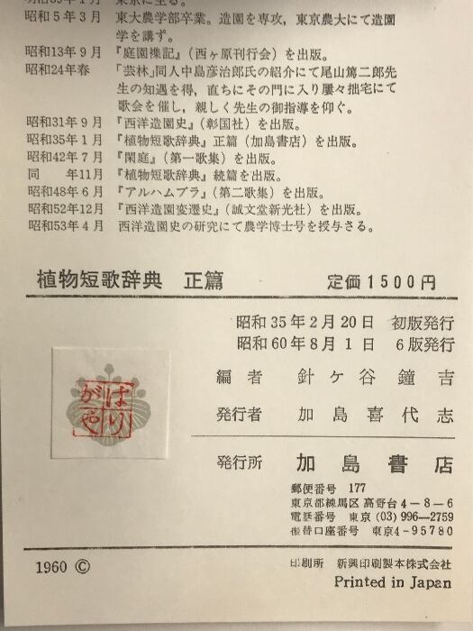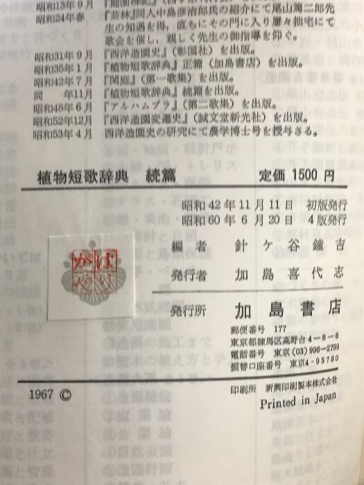 タイトル:植物短歌辞典(正篇・続篇/全2冊セット)昭和60年 加島書店
