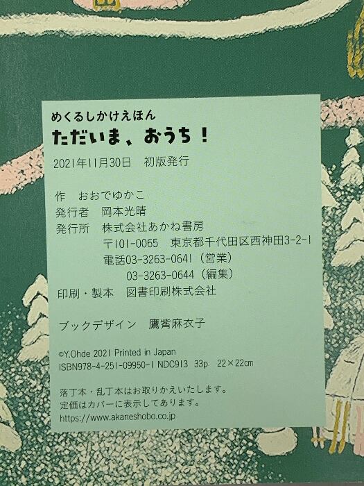 タイトル:めくるしかけえほん ただいま、おうち! あかね書房 おおでゆかこ