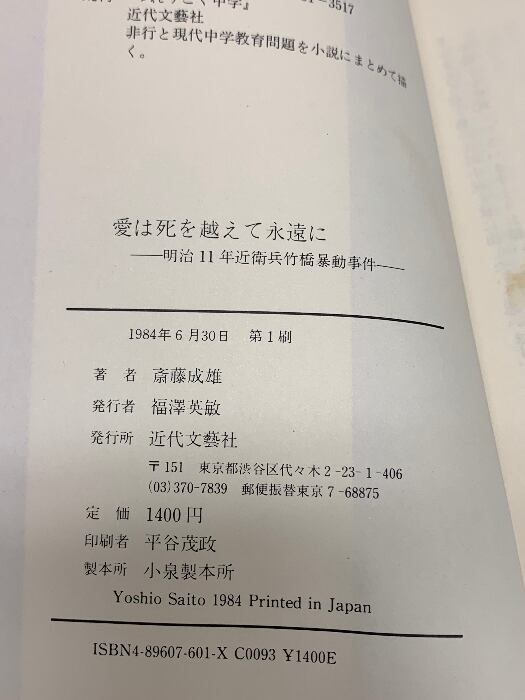 タイトル:愛は死を超えて永遠に 第1巻 明治11年近衛兵竹橋暴動事件 近代文藝社 斎藤 吉雄