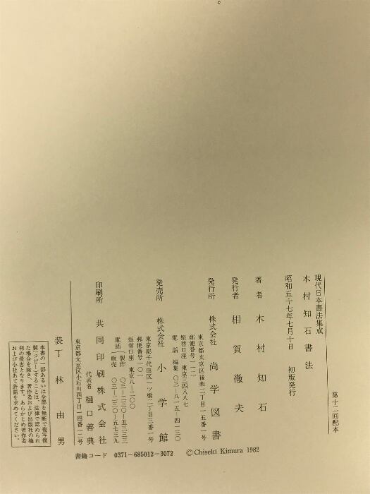 現代日本書法集成 木村知石書法 昭和57年初版 発行:株式会社尚学図書 発売:小学館