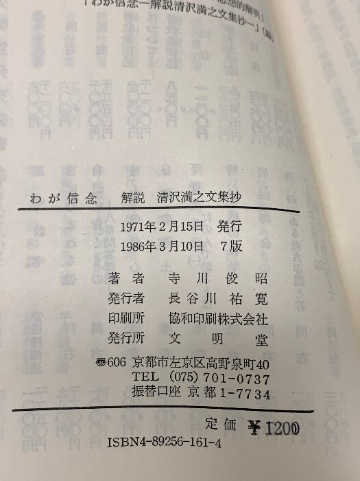 タイトル:わが信念: 解説清沢満之文集抄 文明堂 寺川 俊昭